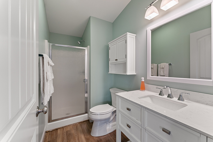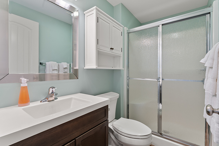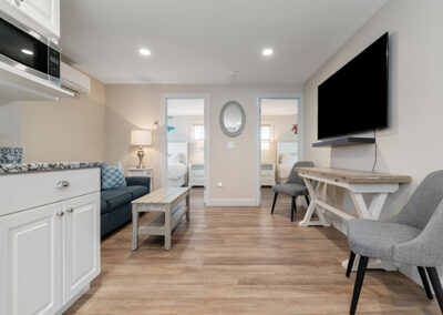 2 bedrooms, 1 king; 1 queen, each with bathroom, smart TV & closet