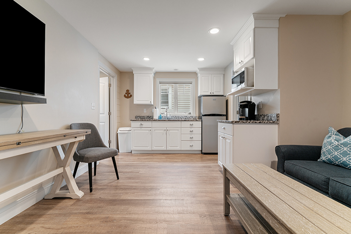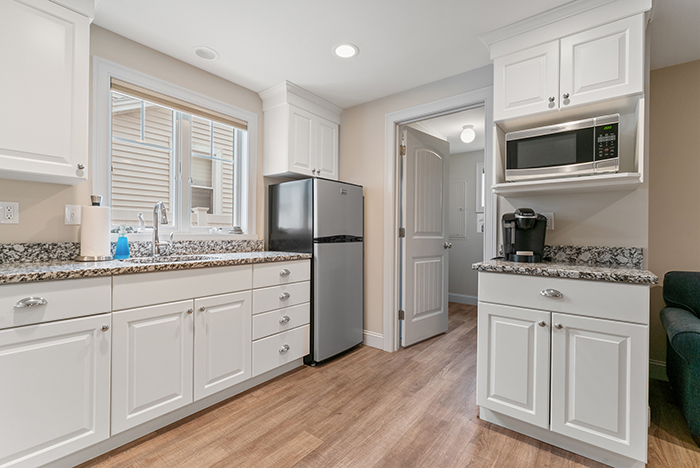 Kitchenette (granite with refrigerator, microwave, sink, storage)